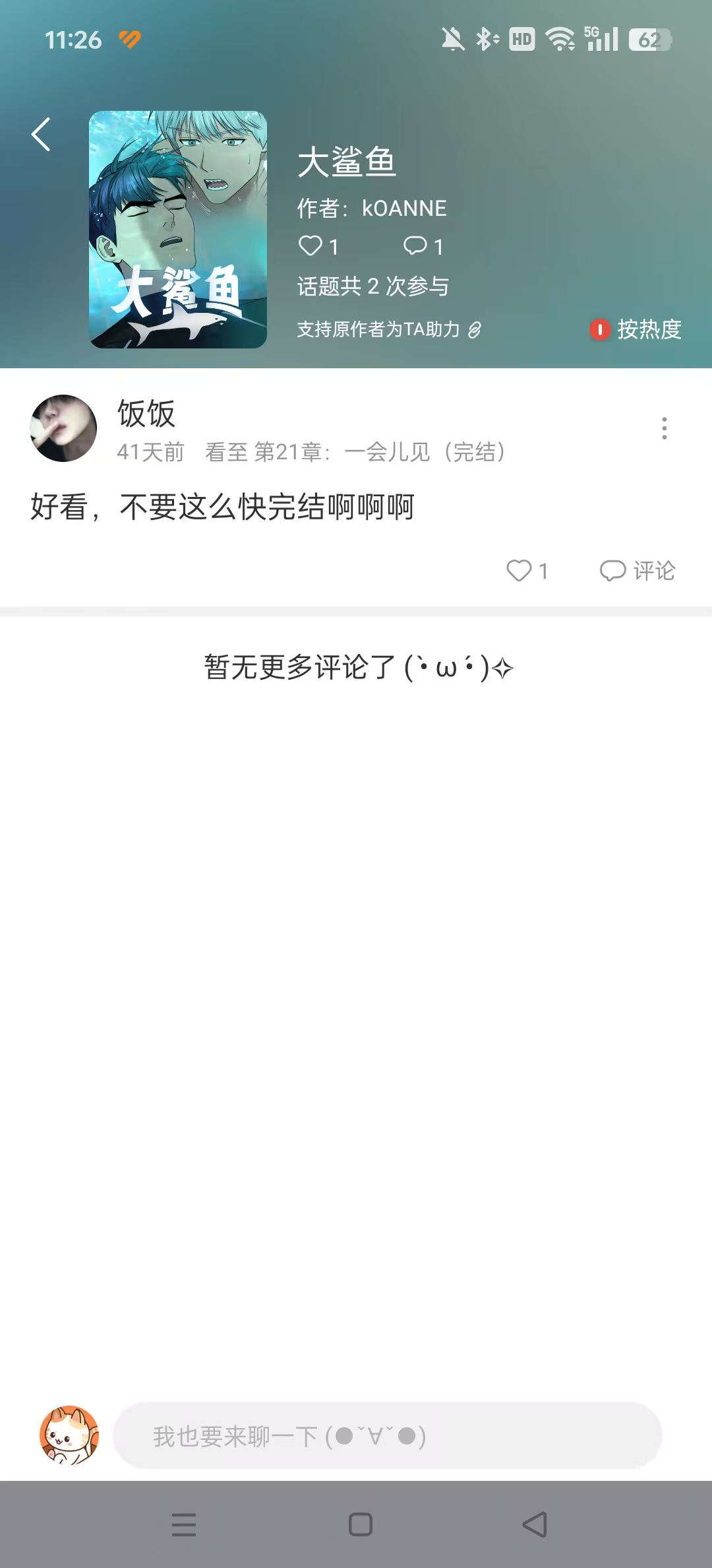 3、右上角的放大镜就是搜索功能了,找到自己想看的漫画,也可以在漫画下面留言,包括加书架等等。