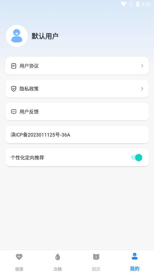 5、【我的】版块,因为软件本身是不收费,也无需注册登录的,针对于软件的一些使用注意事项及问题可以在此反馈,关闭或推荐个性定向化推荐页是可以的。