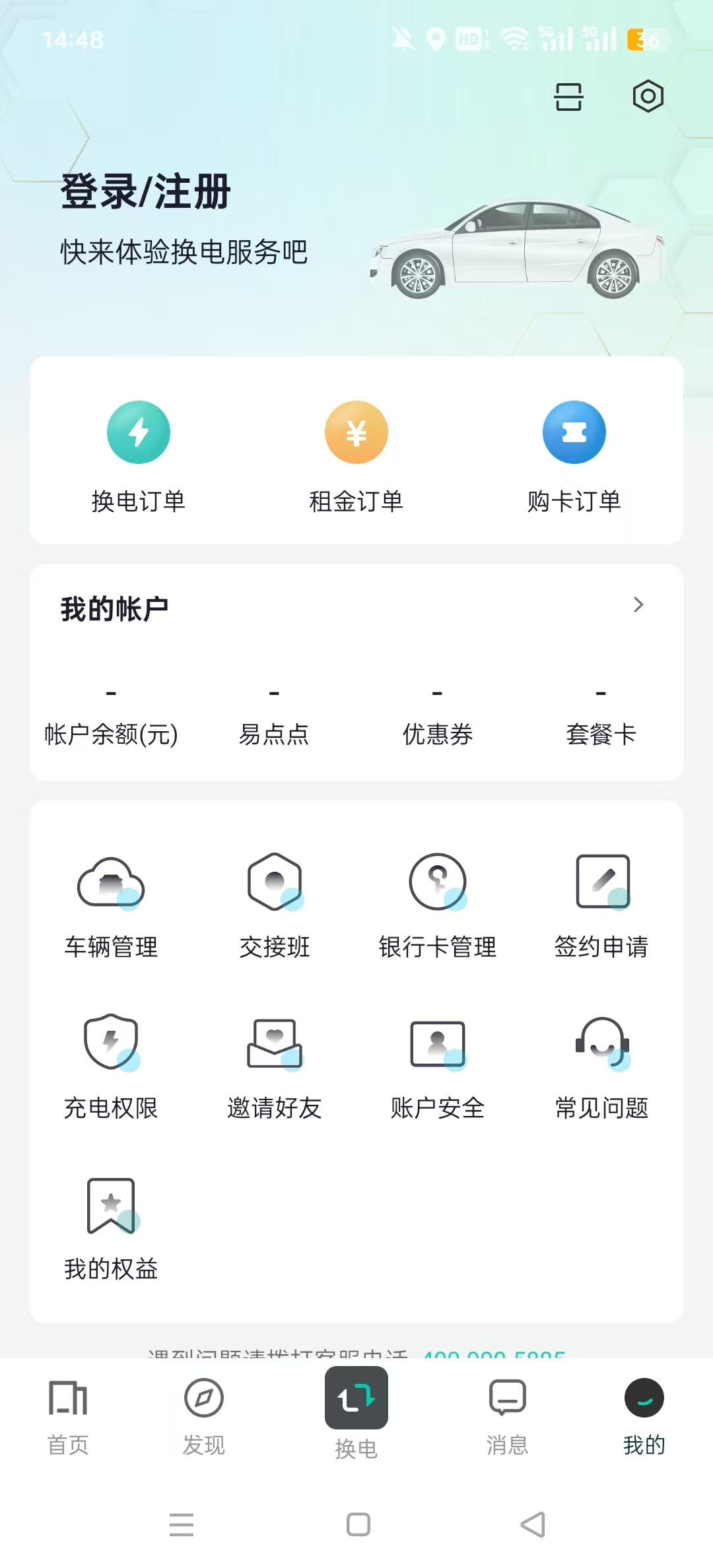 1、下载易易换电app以后打开,选择登录/注册,输入手机号码。