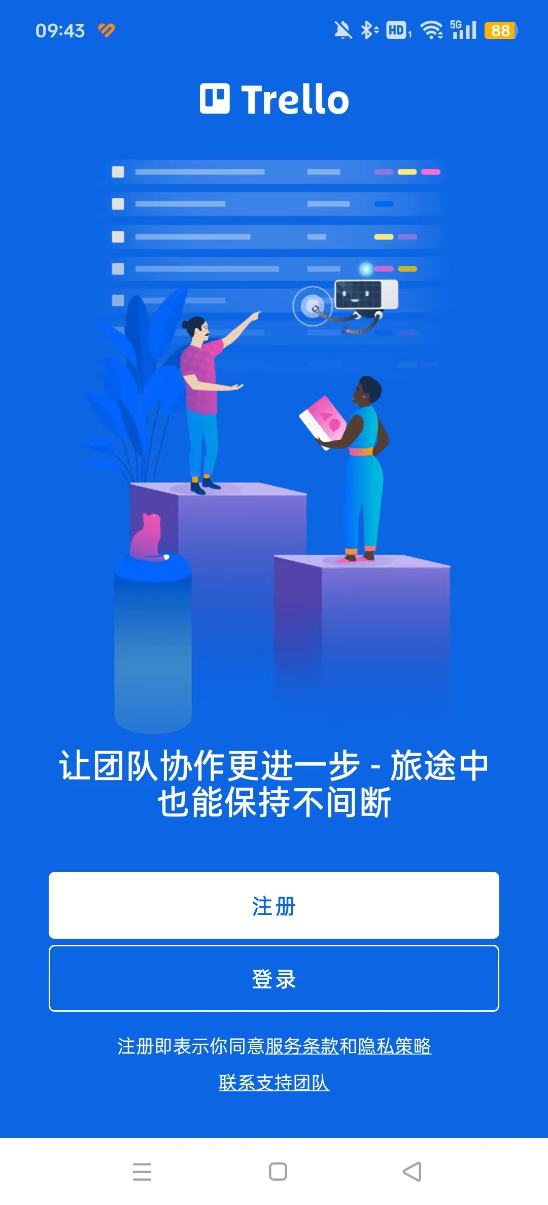 * Trello 离线工作!随时将信息添加到您的面板和卡片中,系统会将其保存以备日后之需。我们会为您提供支持。