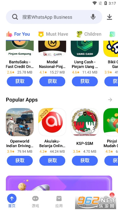 1、所有你想要的应用全都有,轻松式的就能进行下载了。