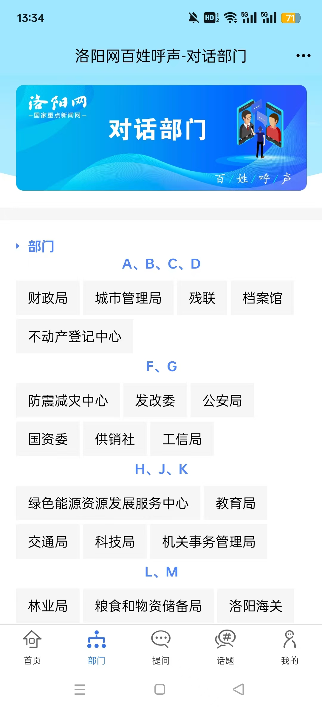 平台设有问题搜索框、对话部门、办理排行、民生热点和我要提问等功能,便于用户提问和查看处理进度。
