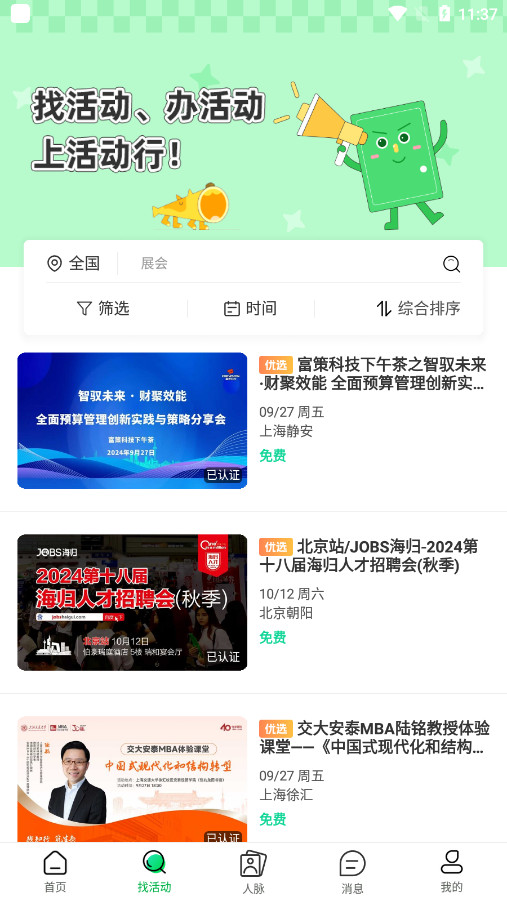 活动行不仅是社交平台,更是先锋行业风向标。在这里,您可以第一时间掌握各类最新、最潮的行业会议、职场沙龙、博览会等信息,如Web3、出海、企业数字化、新能源汽车、生物医疗技术、直播电商等。参加活动,不仅能增长见识,还能结识优秀的朋友,丰富您的业余生活。