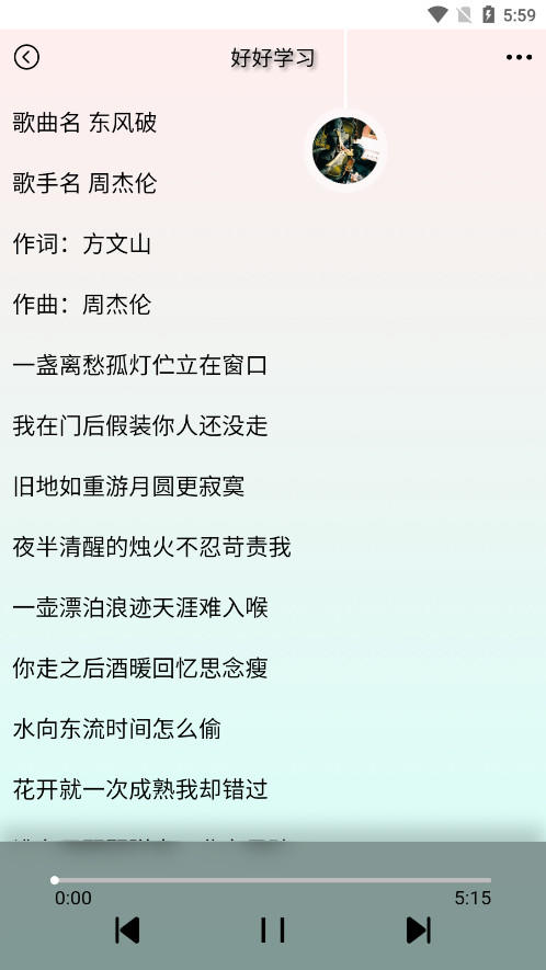 4、选中其中一首播放,聆听的同时还能够对照歌词一起跟唱。