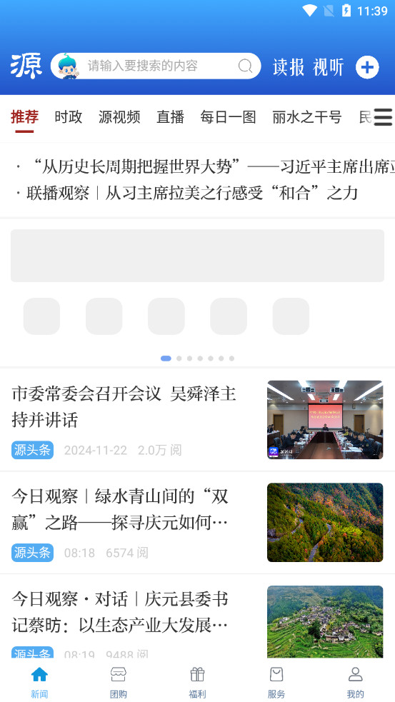 2、源新闻客户端整合了原丽水日报报业传媒集团指尖丽水和原丽水广播电视集团无限丽水两大新闻客户端,集合报纸、电视、广播的优质新闻资源