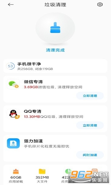 3、【一键加速】卡顿问题一键解决,小米垃圾清理提高手机流畅度。