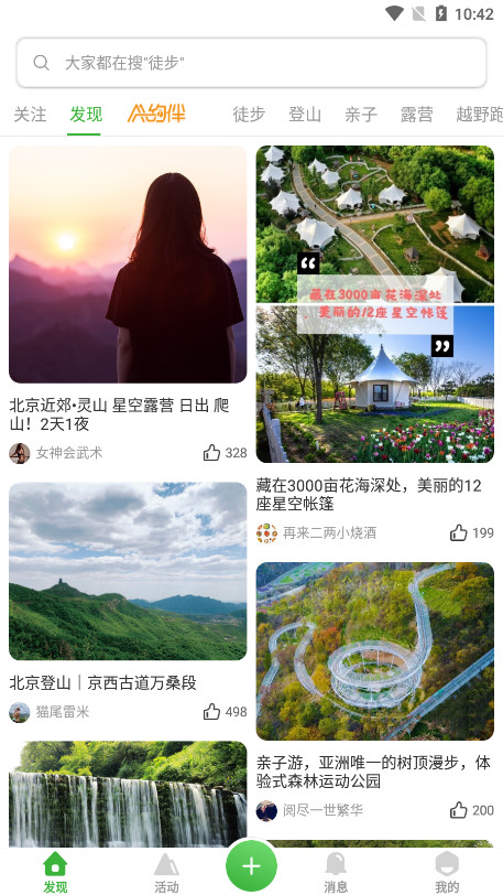【户外社交】小伙伴乐观开朗,常常和驴友结伴一起探索新路线。你的户外梦,在这里都会被称赞哦