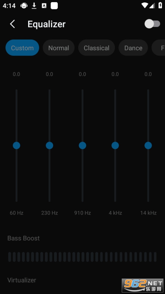 强大的均衡器。具有低音增强、混响设置、声场调整等功能。