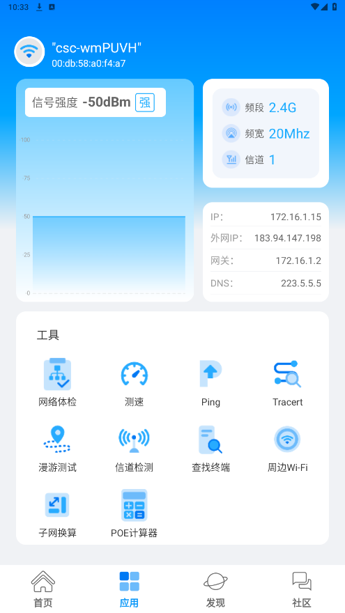《爱快e云》是您的无线网络管理神器!集远程路由操控、WIFI深度分析、高效网络部署及实时资讯获取于一体。无论是Ping/Tracert诊断、网络测速,还是信道优化、漫游测试,e云都能轻松应对。更有布点验收、PoE计算等实用工具,助力您精准规划网络方案。随时随地,通过手机即可掌握网络全局,实现高效移动运维,是网络工程师与无线网络爱好者的不二之选。