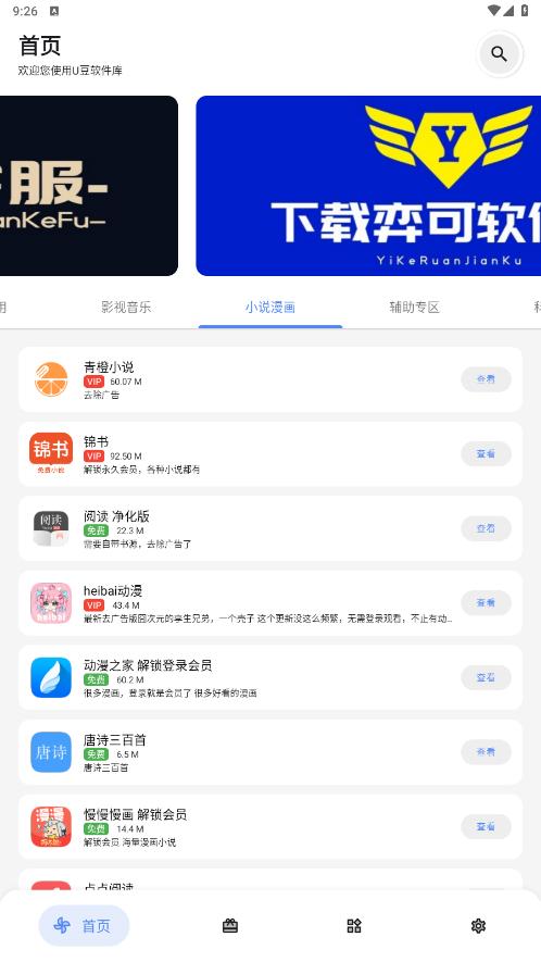 U豆软件库是一款集多功能资源与实用工具于一体的宝藏APP,涵盖实用应用、影视音乐、小说漫画、辅助工具等海量资源,满足用户全方位娱乐与办公需求。无论是寻找热门软件、畅听全网音乐、阅读精彩小说,还是获取创意头像、高清壁纸,U豆都能一键直达。更有小霸王经典游戏、趣味网站导航及在线工具箱,助你轻松玩转数字生活,打造个性化娱乐与效率空间。