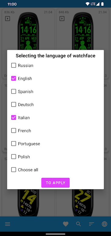 从今天开始,借助“小米手环 7 表盘”应用程序,您会发现所有表盘都已编入语言翻译目录,只需单击一下即可下载,并在几秒钟内准备好使用 Mi Fit / Zepp Life App 刷新。