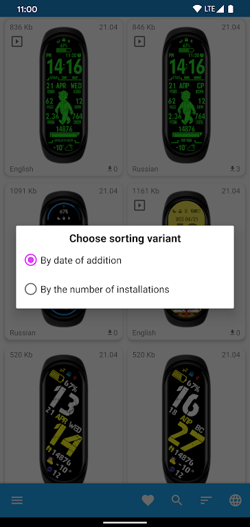 按下载次数或添加日期对表盘进行排序!