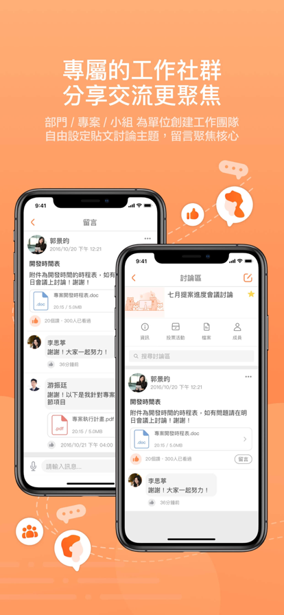依各主题会议及项目会议,透过贴文进行管理,使会议数据与讨论内容传承更容易!