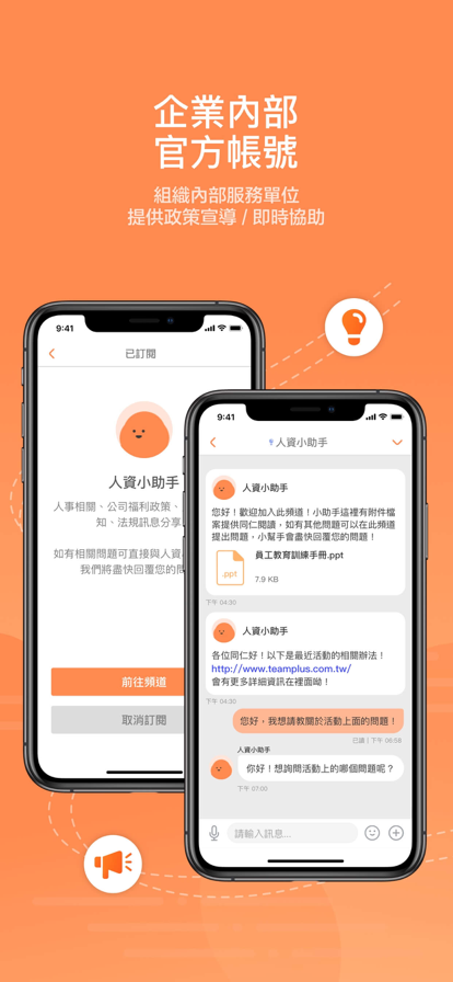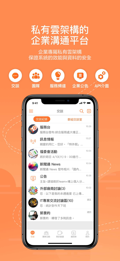 将私人与工作信息完全分开,公私分明!更支持多元化的档案,包含文件、位置、视频及录音,还有已读/未读名单,快速掌握对方是否接收信息。