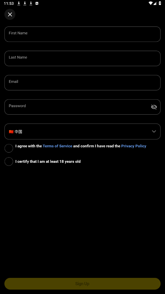 输入姓名,邮箱地址,密码,勾选用户协议,点击注册
