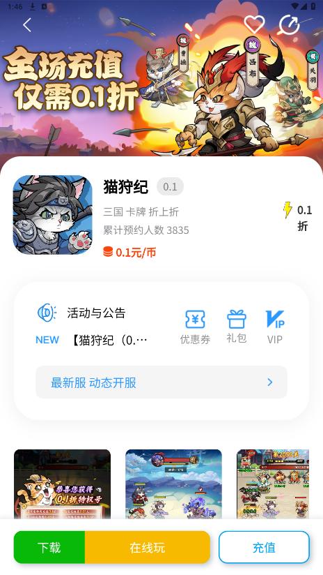 进入游戏详情界面,点击下载或者充值游戏