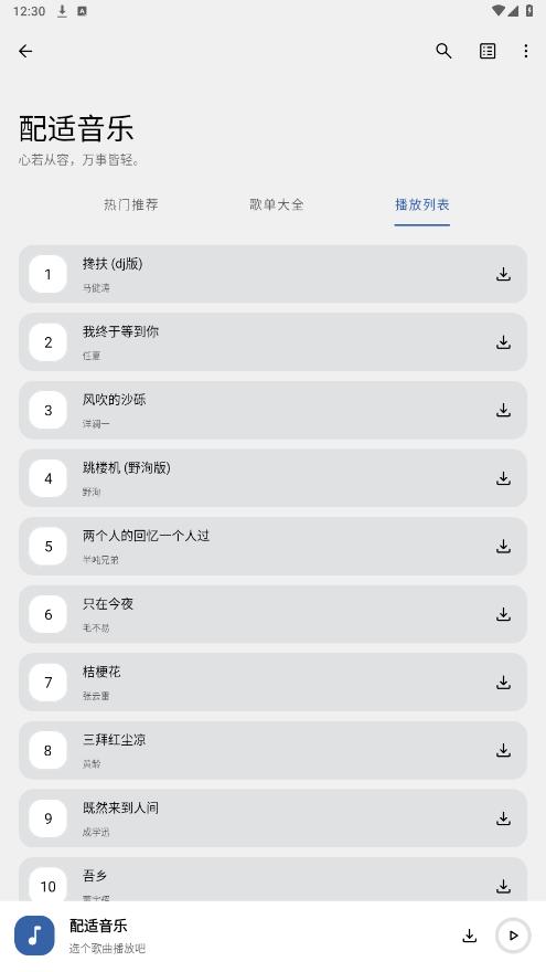 《配适音乐APP》来拯救你的听歌体验!这可不是一款普通的音乐应用,它是打破传统音乐平台付费枷锁的先锋。在这儿,无需掏一分钱,就能一头扎进音乐的浩瀚海洋,尽情畅听。快来下载,开启你的音乐自由之旅吧!