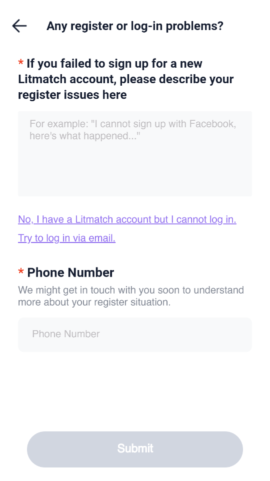 Litmatch 珍惜温暖、安全和良好的氛围。这就是为什么我们总是向您承诺一个人们尊重爱、拥抱差异、毫无压力地沟通的社区。我们不容忍任何不当行为或粗鲁行为。