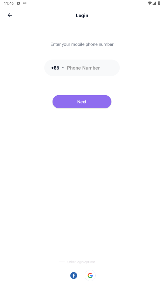 进入软件后,选择注册方式,Litmatch 可选的注册方式为:Google、Facebook 和手机号账户。