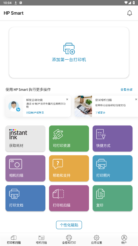 4、打开HP Smart应用:打开下载并安装好的HP Smart应用。