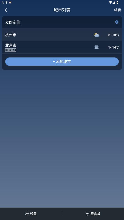 3. 城市添加:自动定位当前位置,手动添加需求城市,应对不同人群的不同定位需求;