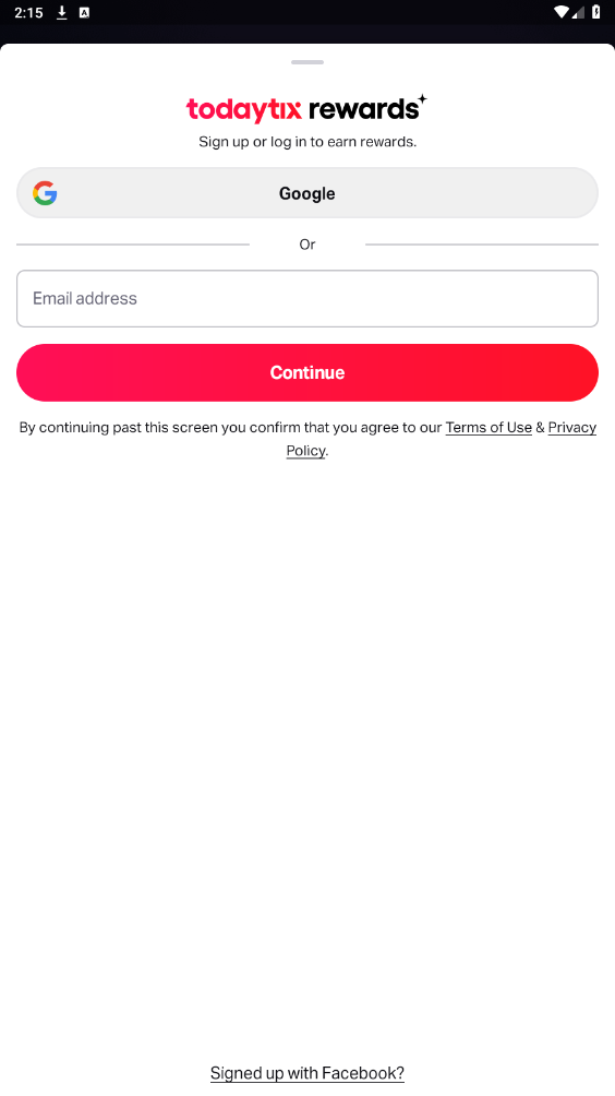 打开todaytix,点击登录或者注册