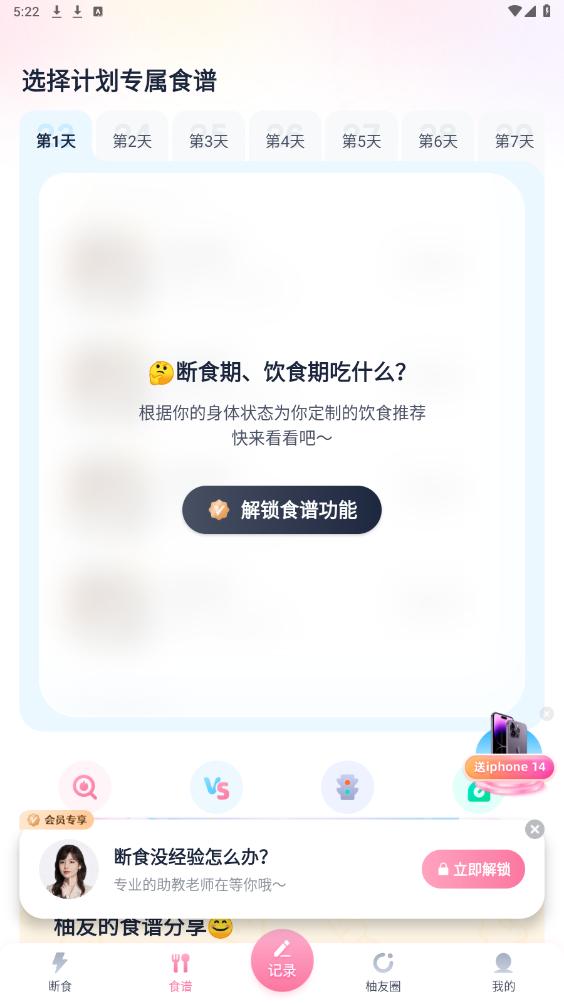 柚子轻断食app提供了详细的断食记录和体重追踪功能,用户可以实时查看自己的饮食情况和身体变化。通过可视化数据展示,用户可以更直观地了解自己的减肥进度,及时调整饮食计划,更好地掌握自己的健康状况。