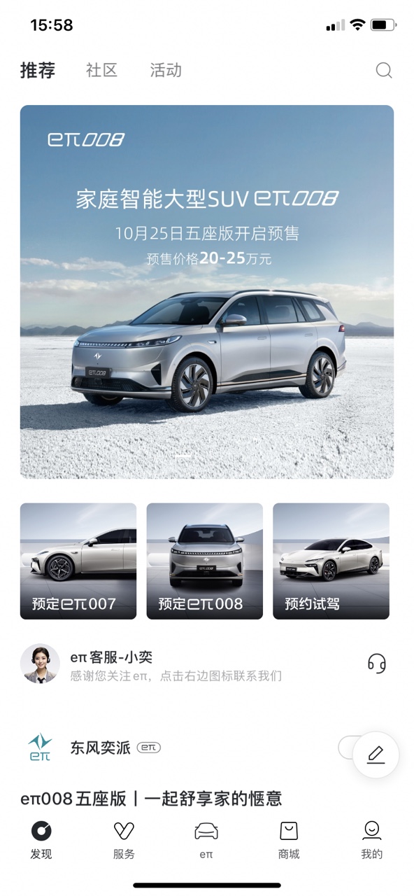 欢迎体验全新的东风奕派APP,这一款APP是专门为东风奕派的用户和爱好者设计的,提供一站式全方位的服务体验。可以在这里使用车辆控制、充电、在线服务等常用功能,还可以在社区与其他车主互动交流,认识更多eπ好友;如果你还不是车主,也可以在这里了解我们的产品、品牌、服务,或者参与活动获取积分兑换商品。让您的出行更加便捷、智能和有趣。
