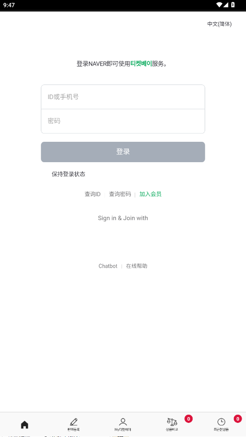 打开ticketbay,进入登录界面,点击注册