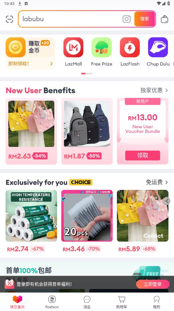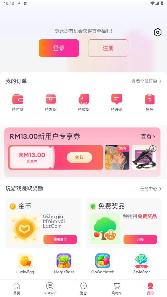为您的第一个订单获取独家优惠券。每天入住时获得金币,每次使用我们的应用程序时从 Lazada 和卖家那里收集代金券!