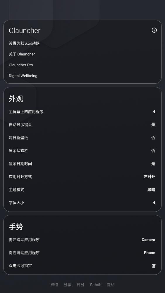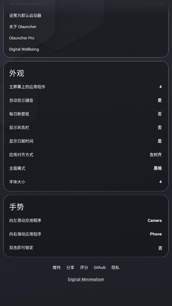重要提示:长按桌面空白处打开 Olauncher 的设置项