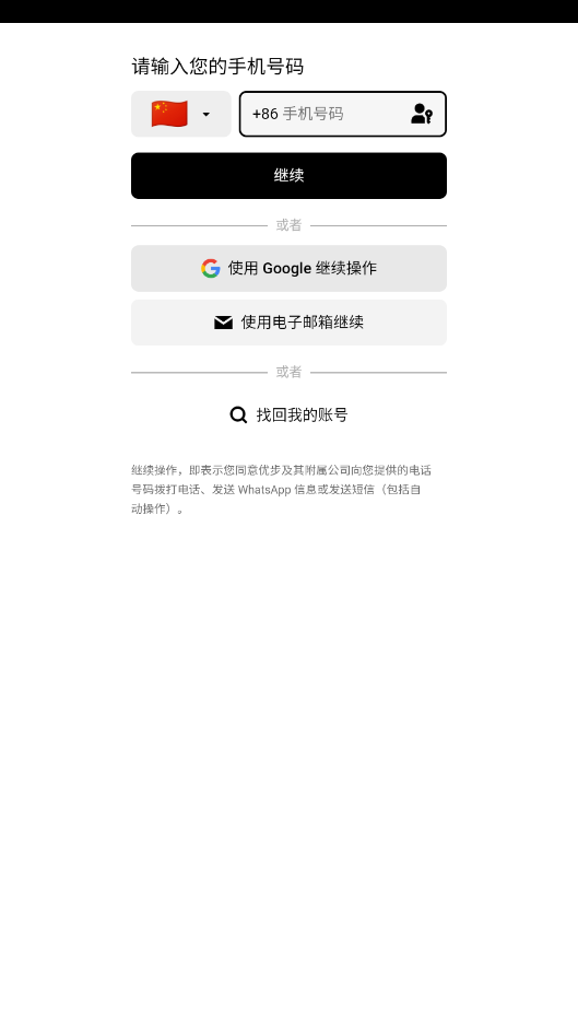 输入手机号码或者邮箱,点击继续