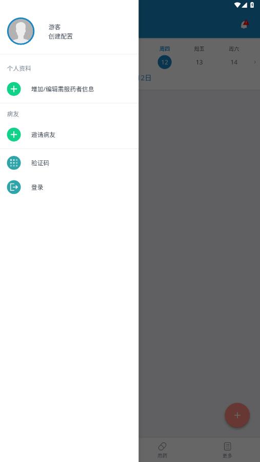 进入软件首页,点击添加药物