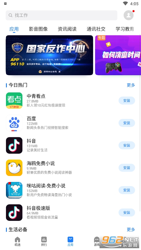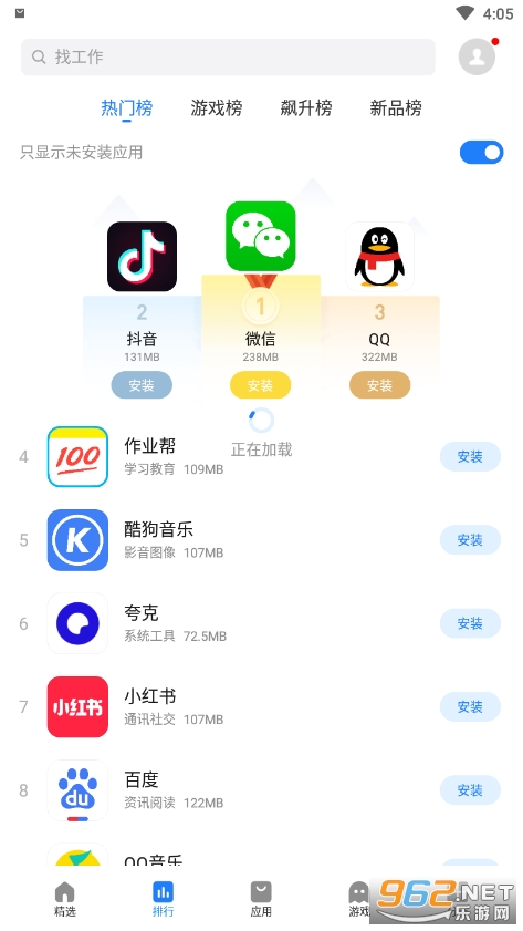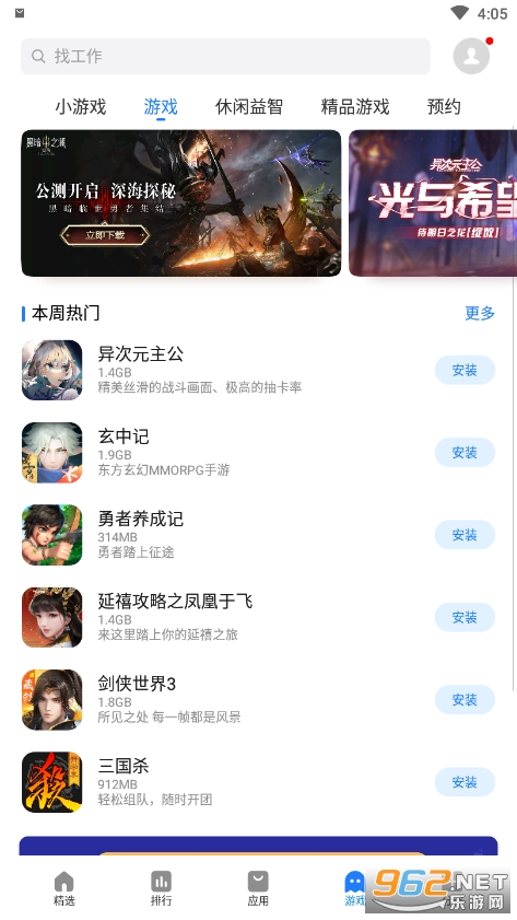 按照应用程序、游戏两大类别分门别类;