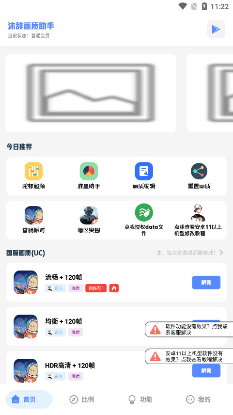 1、沐辞画质助手原老街画质助手升级,首页展示功能更加丰富。