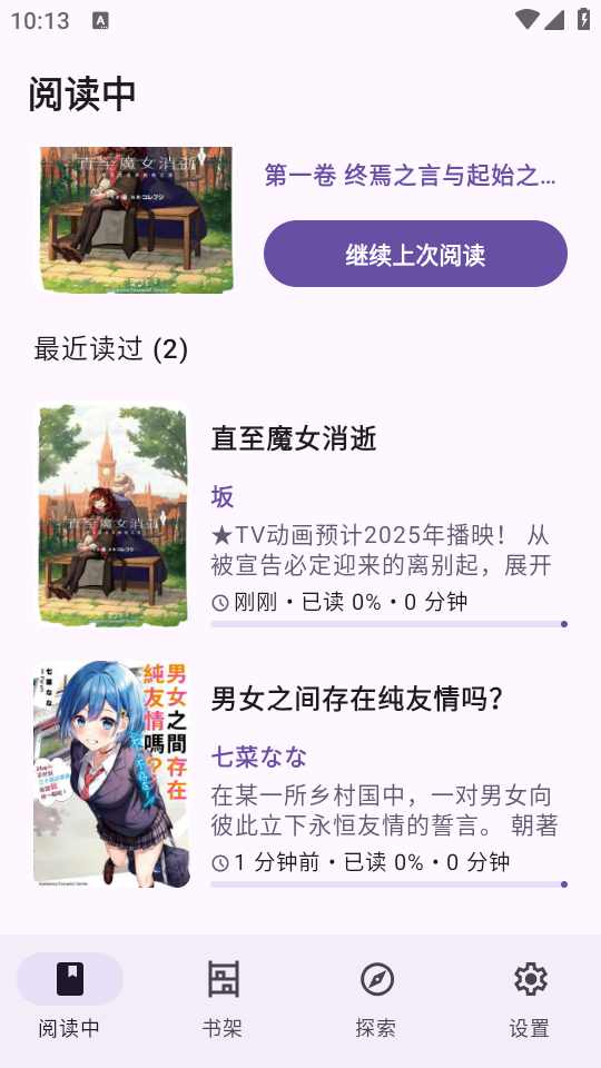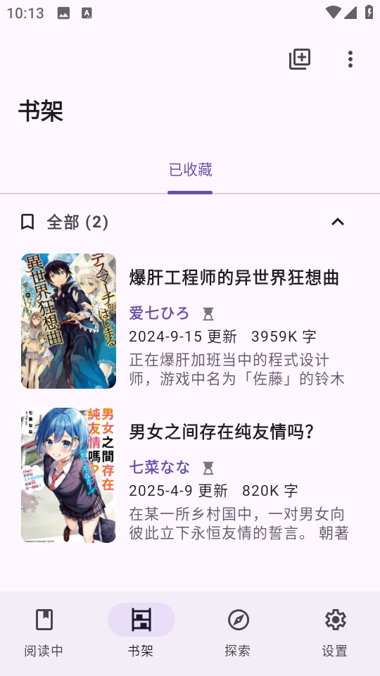 1、初次进入软件什么都没有,可以点击转至探索搜寻需要的小说。