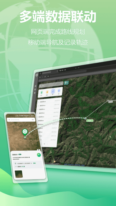 支持移动端、web端数据无感联动,您可以在web端完成路线规划后,在移动端同步路线、循迹、记录轨迹;