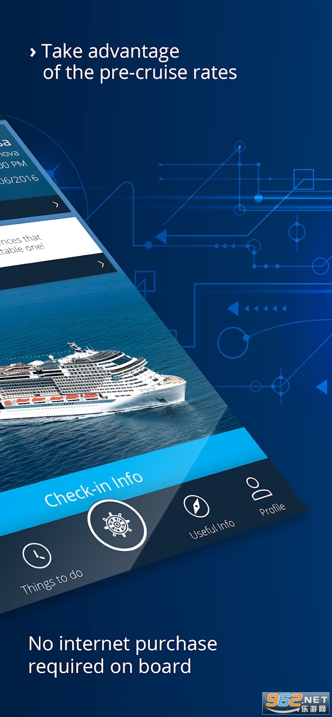 宾客可以通过应用软件提前注册并绑定船上消费预付信用卡,省去上船后的绑定手续,从而拥有更多时间享受邮轮假期。