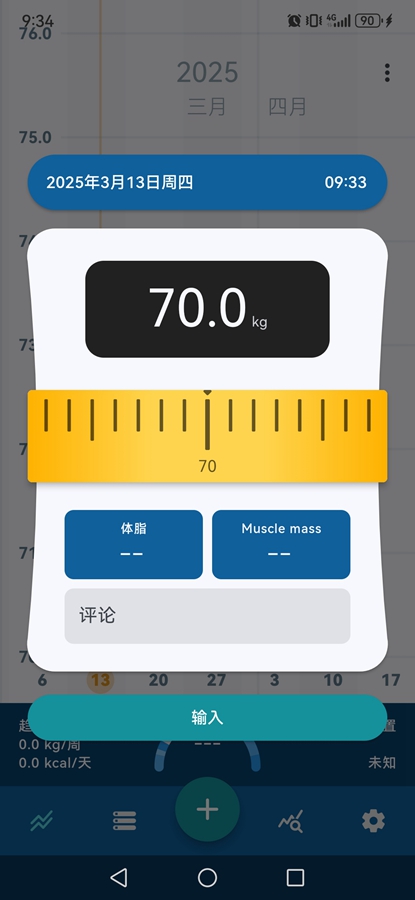 输入体重、体脂等信息后点击【输入】