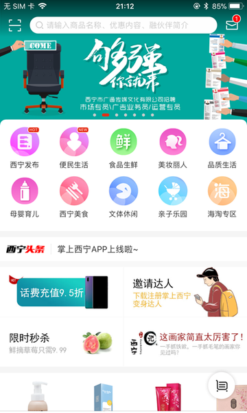 为西宁的朋友们提供各类实用便民生活服务信息。迅捷的信息资讯,灵活有趣的社交沟通平台、海量的钜惠活动,便捷的用户体验、掌上西宁在手,轻松生活全都有。立足西宁,面向青海掌上西宁将力求成为信息快速更新、生活服务到位、掌上互动便捷的城市移动互联平台