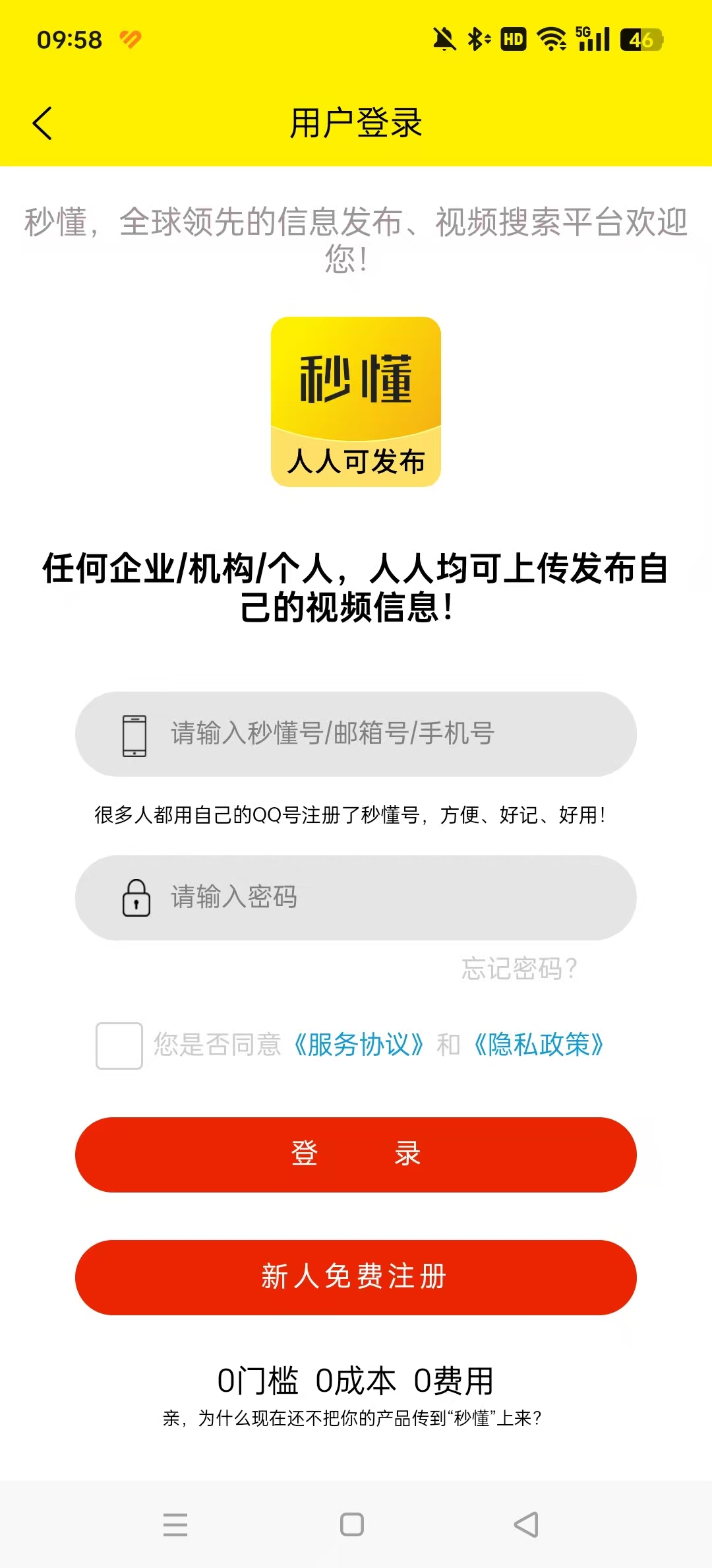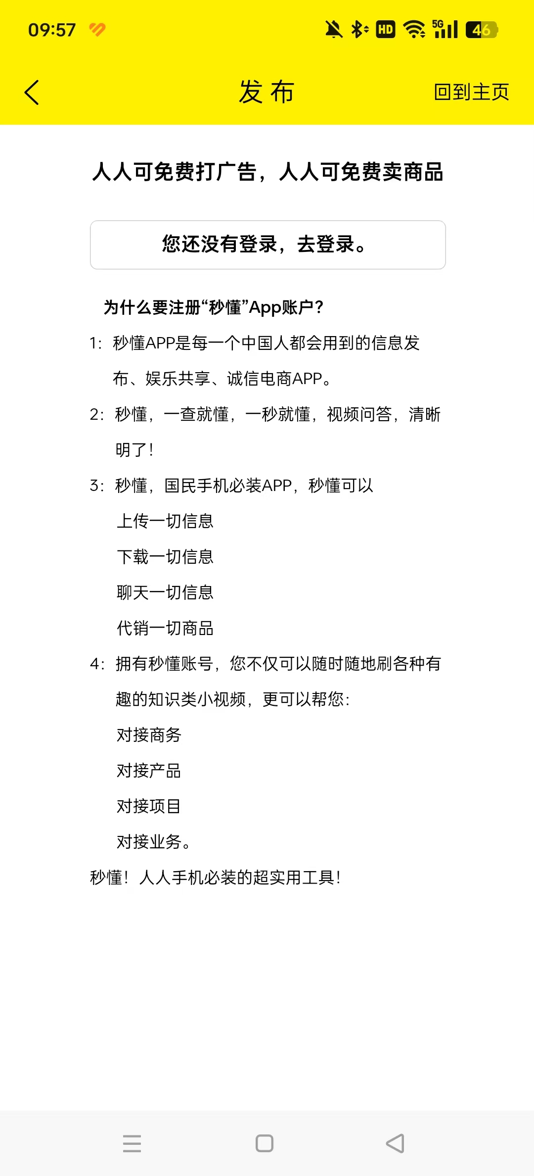 1、找到秒懂百科app我的功能区,在上方注册栏之下就是【视频上传发布】。