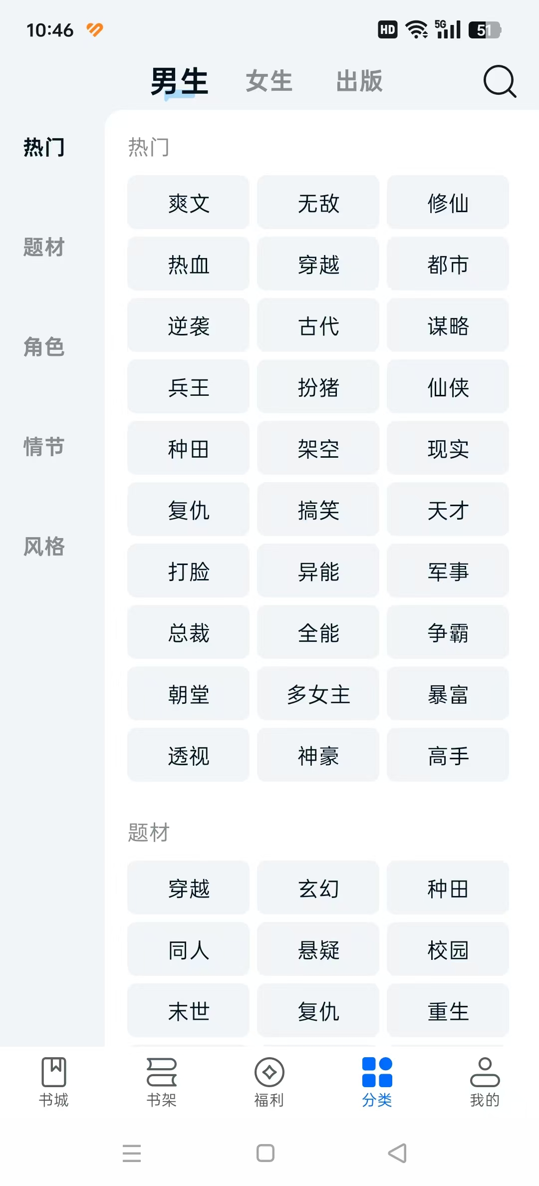 3、不得不说现在的小说APP越来越照顾女用户了,无论是分类还是热门推荐榜单,都有女频文的推荐,都是高热度的小说。