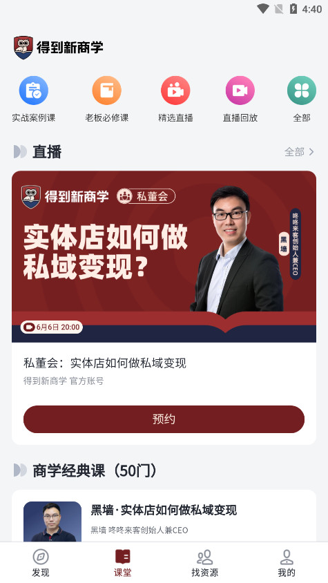 从关注大环境的趋势大课,到专注动作的实战打法;从咨询顾问,到私董会诊;从线下游学,到资源链接。得到新商学,全都为您安排。