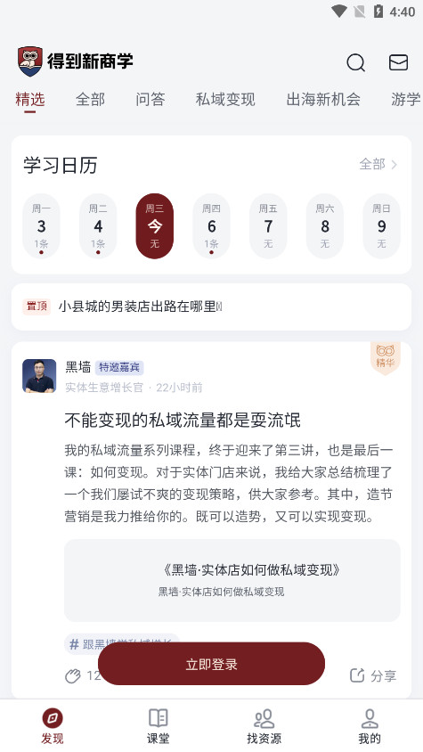 老板您好,欢迎加入“得到新商学”。