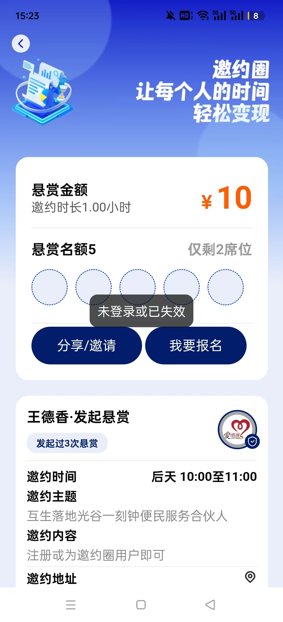 邀约圈是一个时间买卖平台,它可以让每个人的时间像商品一样自由交易约人就用邀约圈。