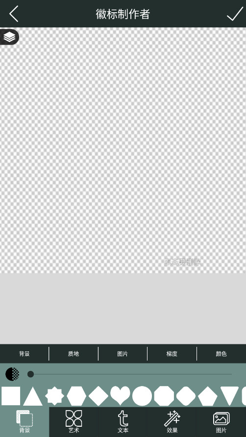 2、默认背景是黑白色的图案,下方则是背景、艺术、文本、效果和图片几个部分组成。