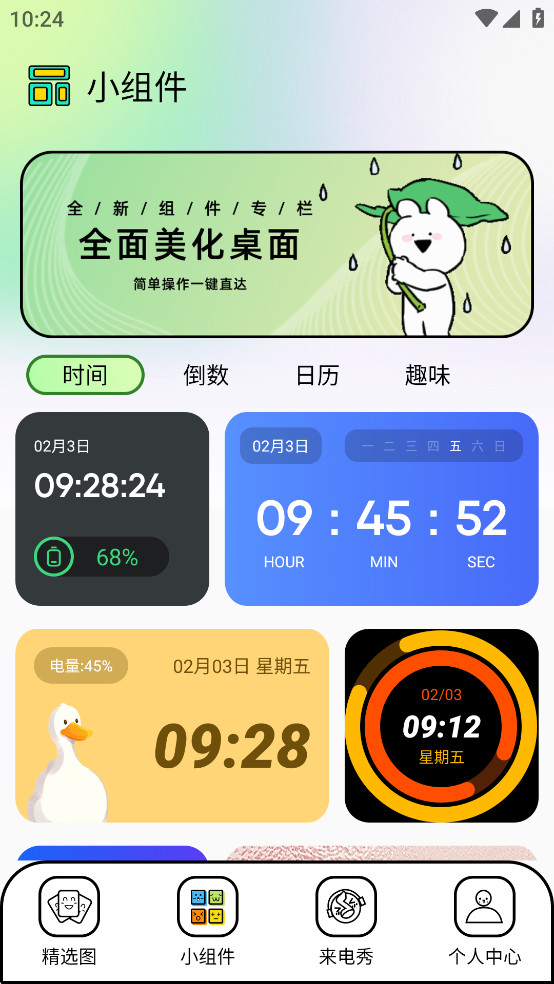 除了丰富的头像与壁纸资源外,柚子壁纸APP还提供了多种实用的小组件选项。这些小组件包括天气小部件、日历小部件、闹钟小部件等,能够实时显示当前城市的天气预报信息、方便快捷地查询日期和时间、帮助用户设置提醒事项等。用户可以根据自己的需求,将这些小组件添加到桌面上,提升桌面的功能性和实用性。