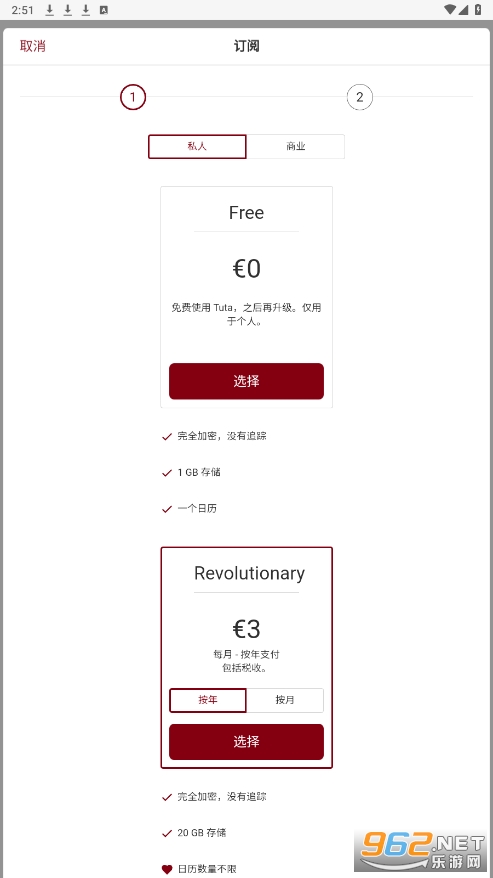 注册免费 1GB 容量的 Tutanota 账户。