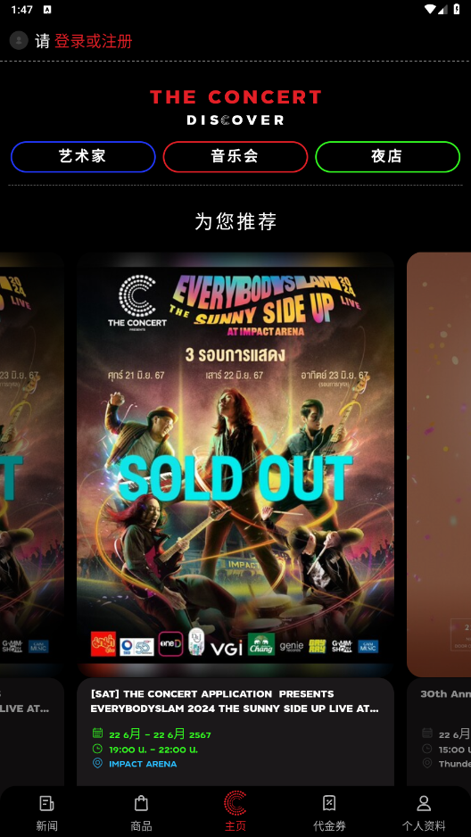 The Concert帮助用户更方便地了解各种音乐活动,并提供了一个轻松订票的平台。让用户可以随时随地了解最新的泰国娱乐资讯,明星活动和动态,在线买票,功能强大,追星族必备!