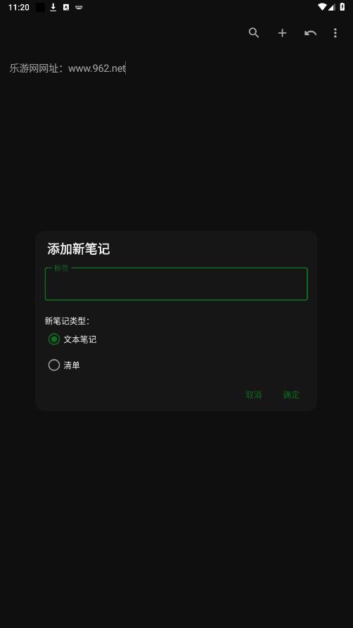 输入笔记名称,选择笔记类型,点击确定,添加新的笔记